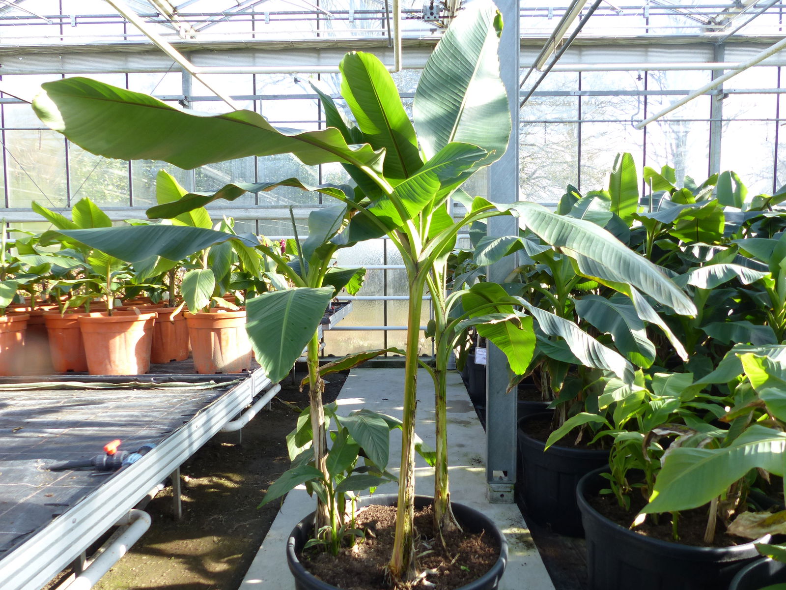 -Bananen im Kübel benötigen eine frostfreie Überwinterung (Dachboden, Keller, Treppenhaus, Wintergarten).