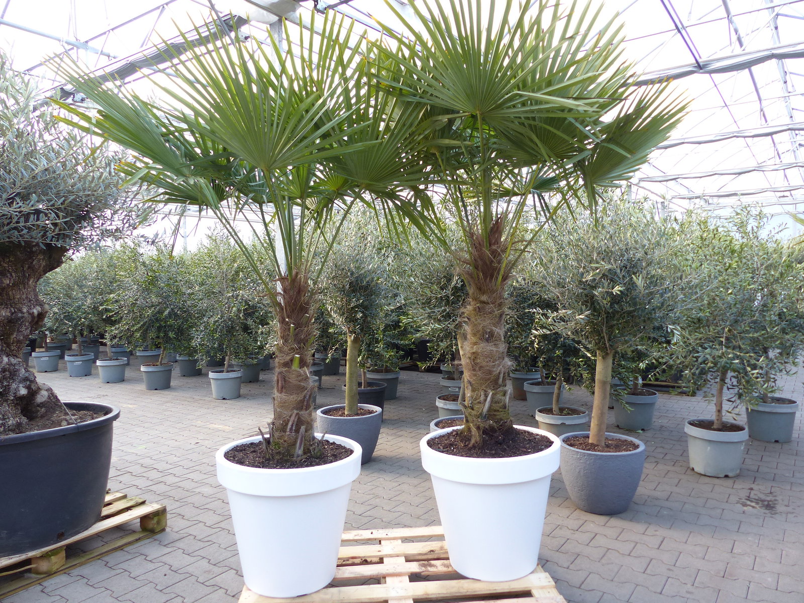 Tolle, sehr kräftige Stämme. Es handelt sich um sehr robuste, äußerst winterharte Palmen.